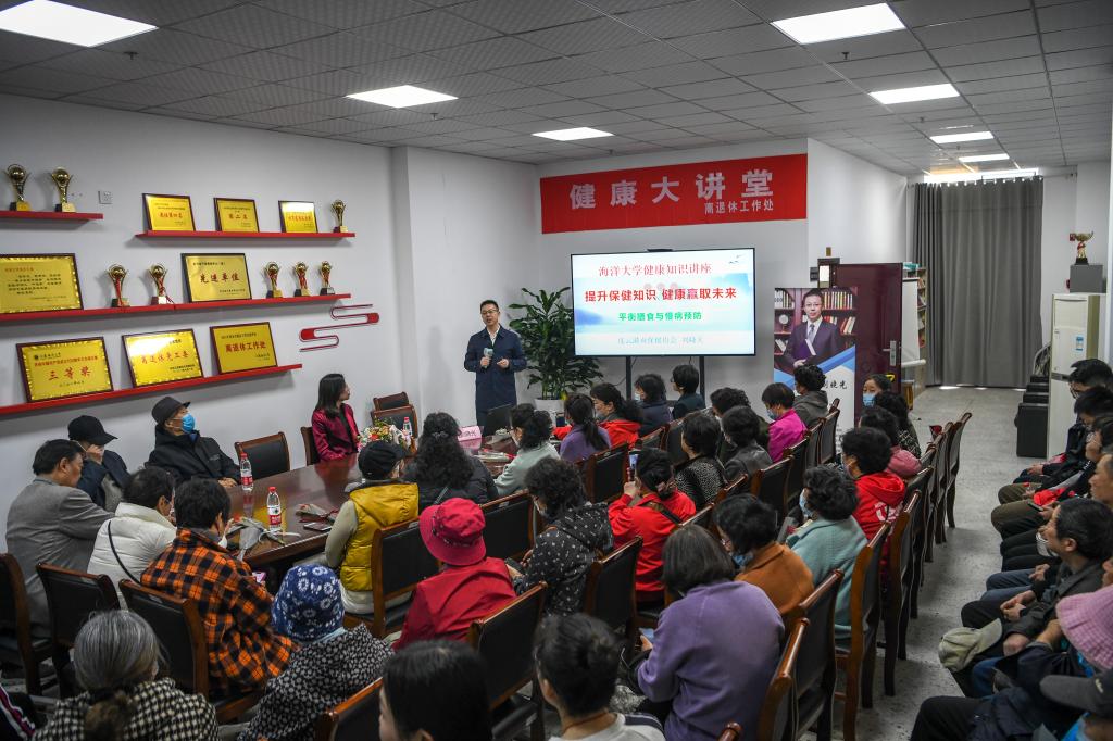 在第113个国际妇女节之日,离退休工作处精心策划了“春风摇曳女神节 同心聚力踏征程”主题活动,常态化开展“我为群众办实事”,切实提升离退休教职工满意度和幸福感。活动内容包括健康大讲堂、竞猜字谜、棋牌及台球等项目。近百人参与了活动。健康大讲堂活动邀请了连云港市保健协会会长刘晓光作养生保健讲座。讲座以平衡膳食与慢性病预防为主题,主要从平衡免疫、健康法则、合理膳食三个方面进行了详细讲解。健康讲座不仅吸引了老同志,还有十余位青年学子前来聆听。讲座结束后,老同志们根据自身身体状况向专家进行咨询问诊,专家现场进行了详细的答疑解惑。