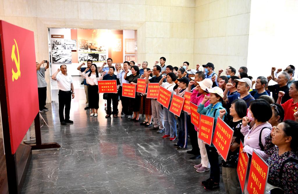 为庆祝中国共产党成立100周年,推进我校离退休党员党史学习教育,从党的伟大历史中汲取继续前进的智慧力量,引领离退休教职工进一步增添正能量,助力学校各项事业发展,6月22日,离退休党工委组织七十多名离退休党员及在职支部全体党员开展“学党史 守初心 当先锋”主题党日活动。