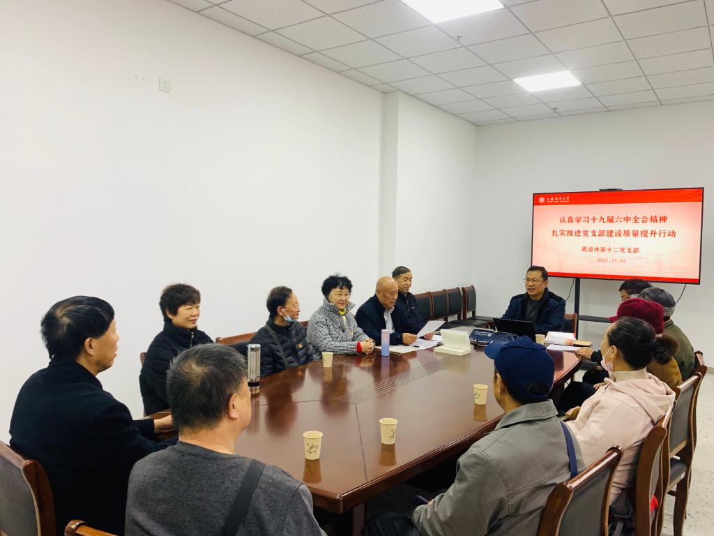 11月17日,为认真学习党的十九届六中全会精神,扎实推进党支部建设质量提升行动,离退休第十、十二党支部组织支部党员开展主题学习活动。
