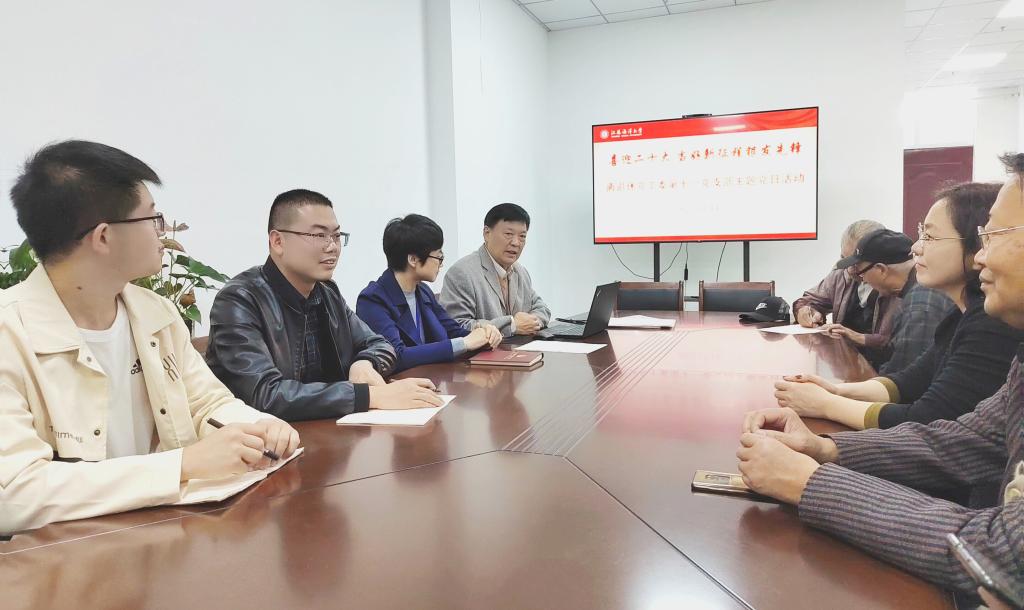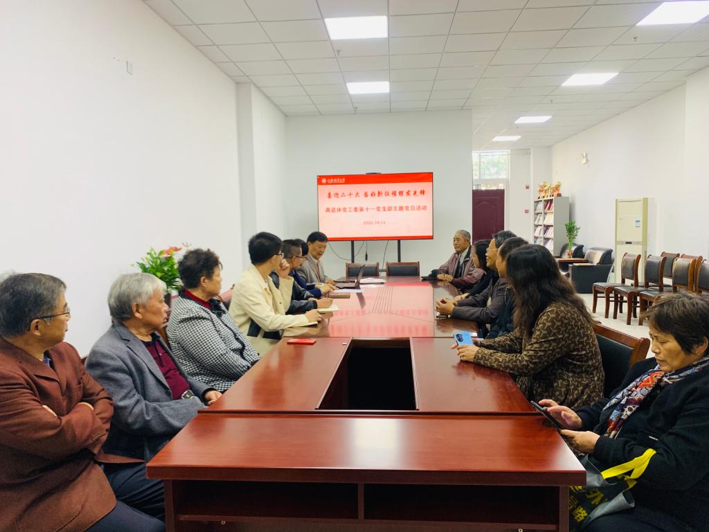 中国共产党第二十次全国代表大会召开在即,为引导我校离退休干部永远跟党走、奋进新征程,10月14日下午,离退休第十一党支部在筑海楼104举行“迎接二十大,当好新征程银发先锋”主题党日活动。活动由第十一党支部书记刘平昌主持,离退休党工委书记、离退休处处长钱汉珍出席会议,第十一党支部10名党员和2名群众代表参加会议,会议特邀结对共建的海洋技术与测绘学院教工第一党支部书记王仁、青年博士石强、曹玉涵等青年教师参加。
