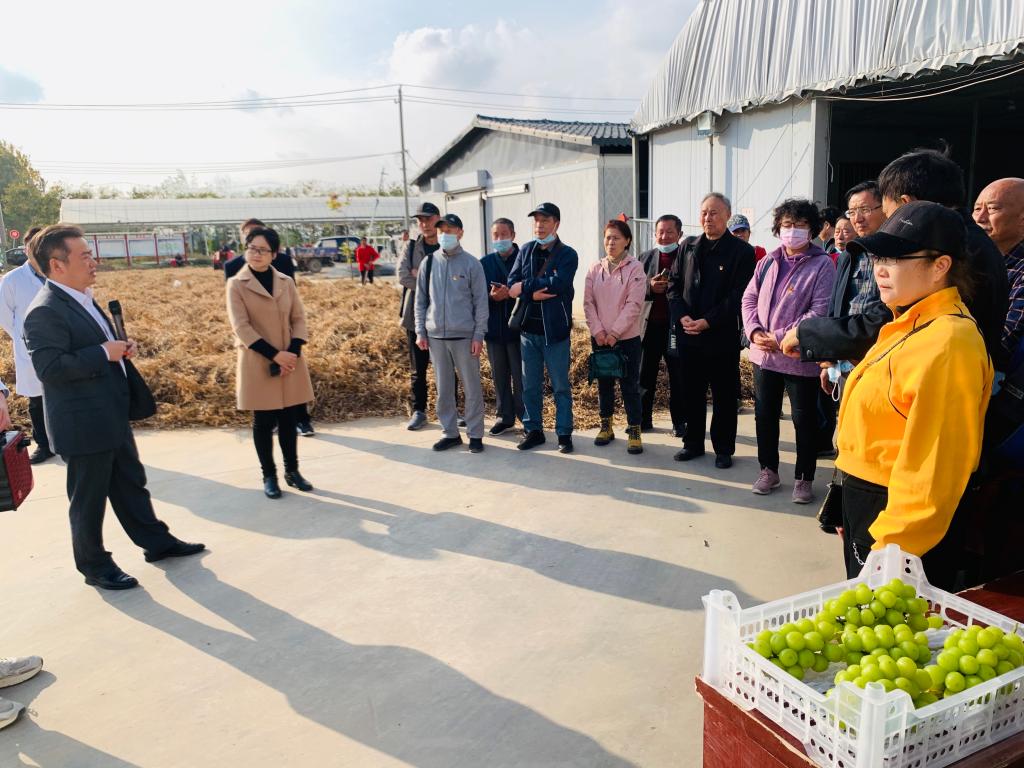 大家来到灌南县百禄镇,受到百禄镇党委政府的热情接待,镇党委书记胥立中亲自带领大家参观了百禄镇为民服务中心、绿缘牧业有限公司、百禄葡萄园、南房村新型社区,并就其发展现状和远景规划作了详细介绍。“便民规范高效廉洁”一站式服务中心;“大数据+网格化+铁脚板”乡镇社会治理综合指挥中心;存栏8500头,日产鲜乳百吨,拥有国内最先进设备的奶肉牛养殖和牛奶生产基地;助力低收入家庭脱贫致富,体现高标准、绿色化、智能化的千亩葡萄园;高起点规划、高标准建设和高质量推进,着眼生态立村、业态兴村、文态铸村、形态塑村,具有江南水乡式社区格局、粉墙黛瓦的南房村……通过学习参观,大家亲身体验了新农村展现出的新面貌以及彰显出的高质量发展的厚重底色,深切感受到在党的坚强领导下,脱贫攻坚战取得的全面胜利,乡村振兴战略使农村的发展充满勃勃生机。