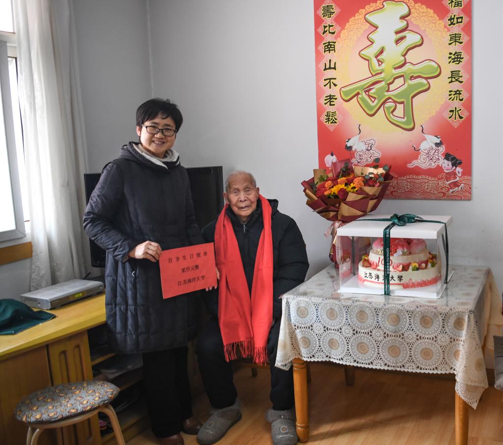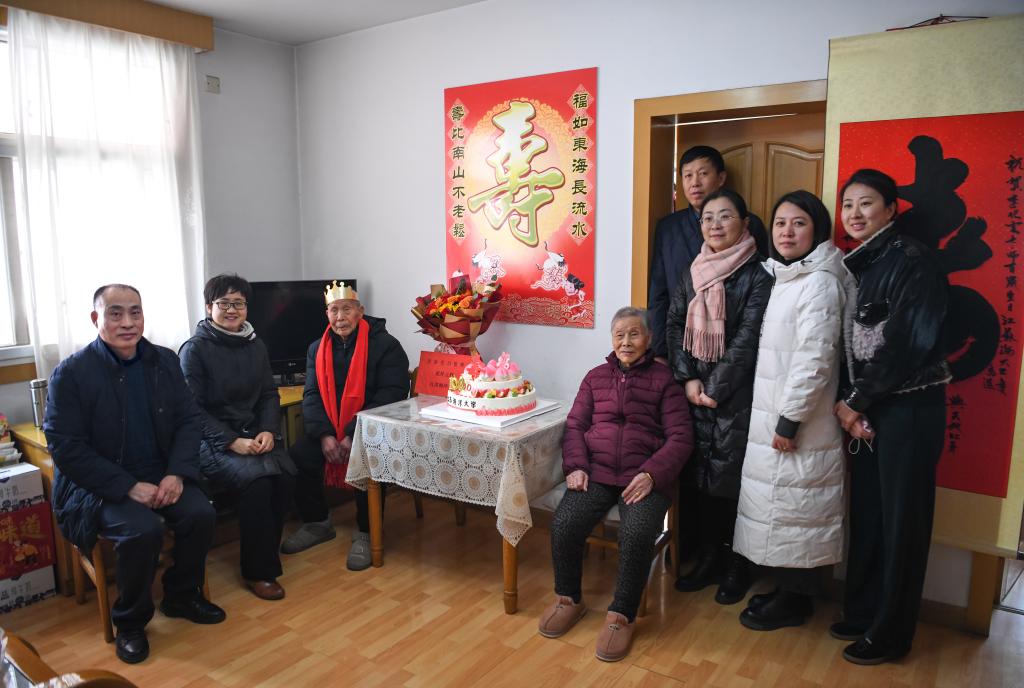 2023年2月22日,是我校退休教师李化云100岁寿辰,李老也是我校第一位百岁老人。当天上午,离退休处在职党支部开展以“心光送暖,祝福百岁”为主题的党日活动,在职党支部全体党员携离退休第十一党支部书记及党员代表到李化云老人家中为他祝寿。