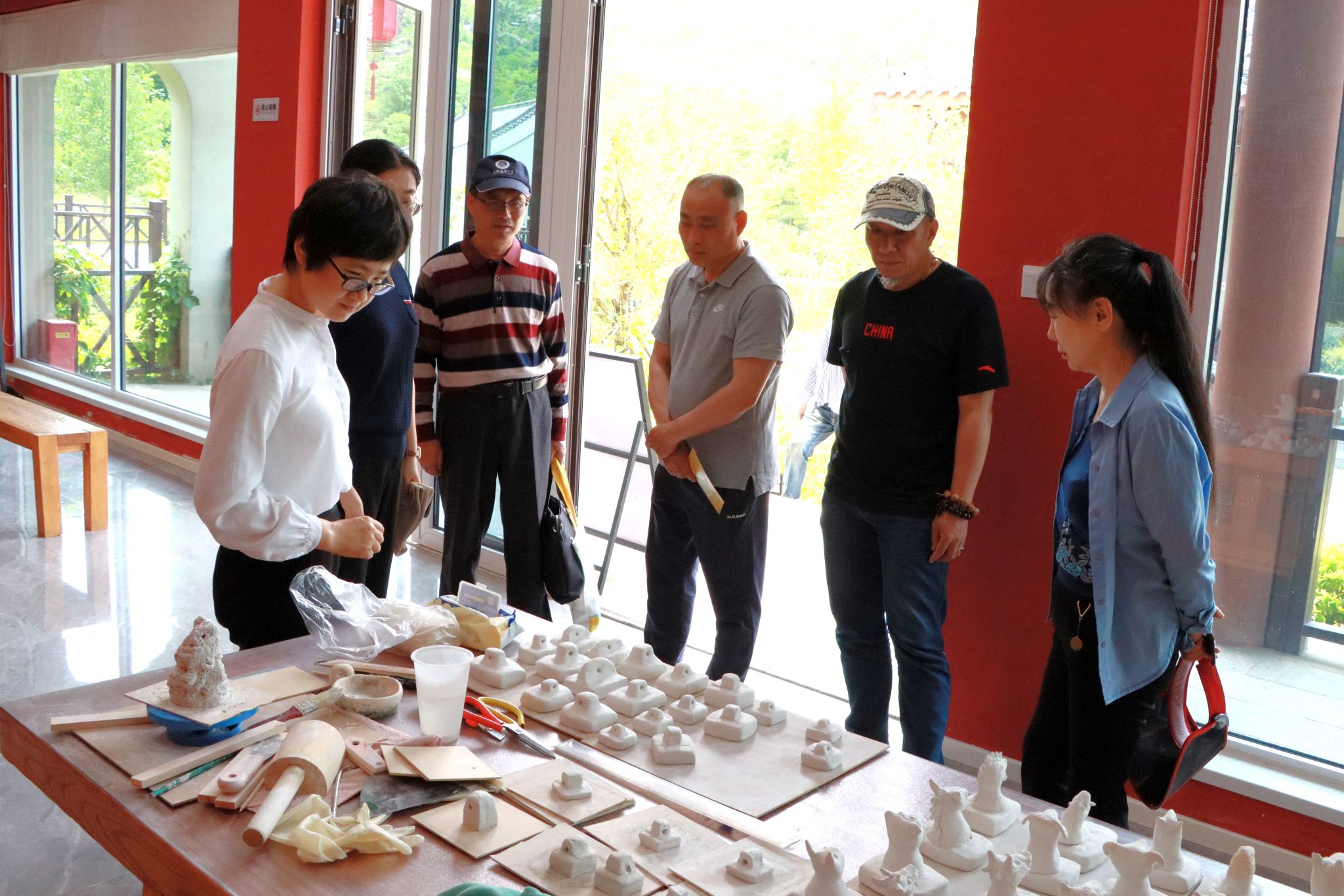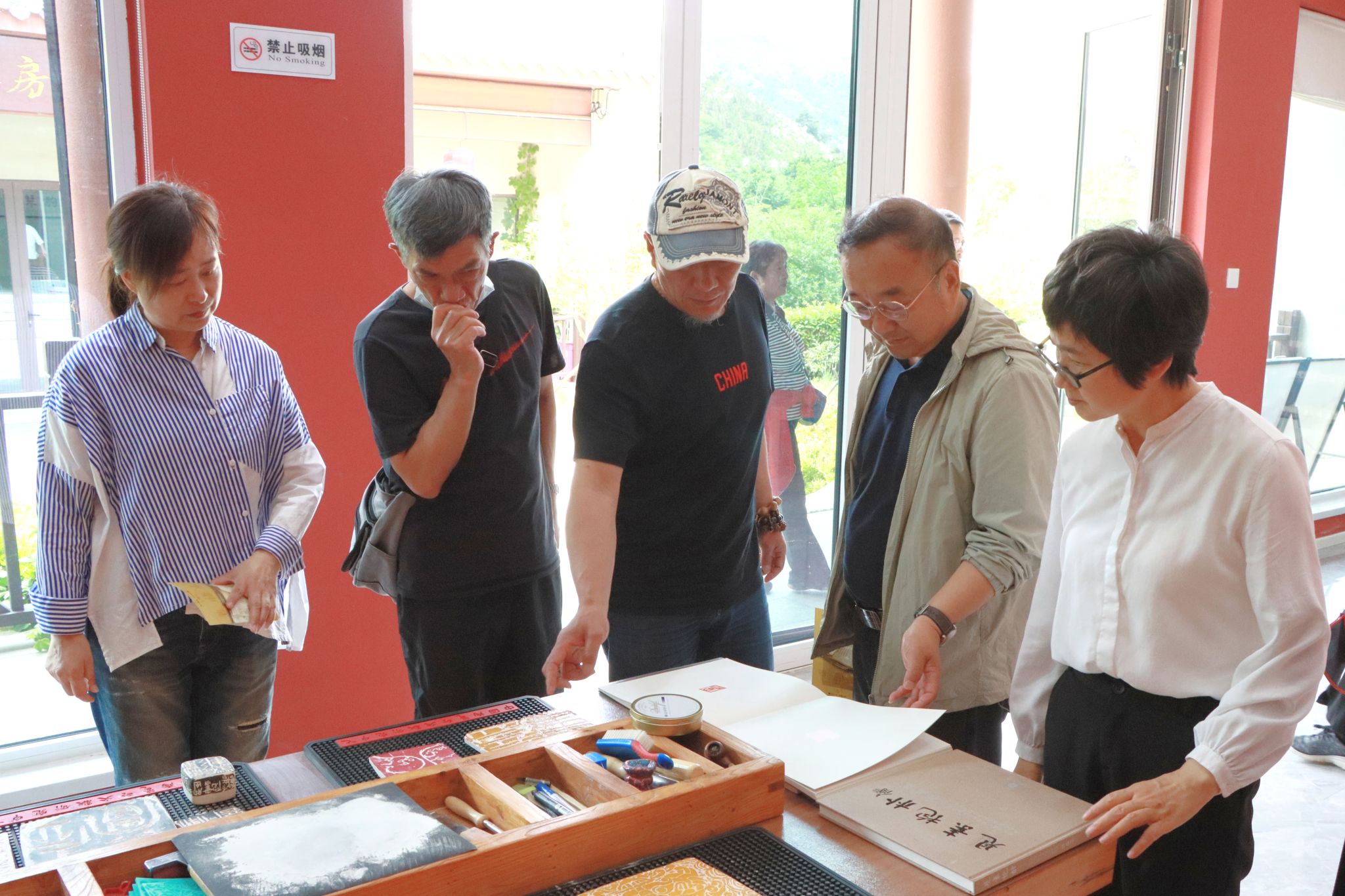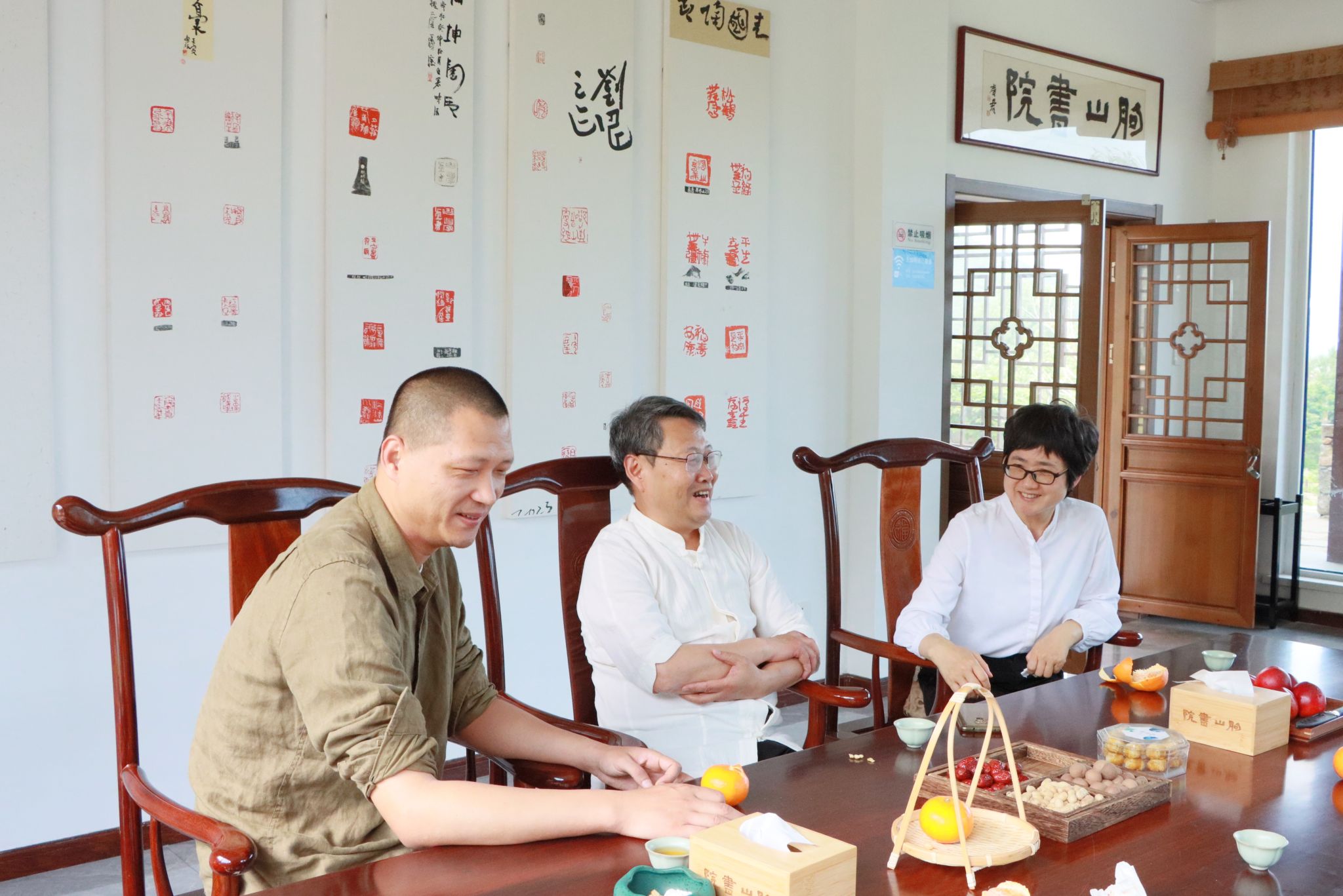 座谈会后,丁宝子带领大家实地参观了朐美术馆、明伦堂、普育书局、中国陶瓷印研究中心、朱琳话剧馆。朐美术馆内,“纸上烟云——江恒源旧藏文人杂诗文献”主题展览引起了大家浓厚的兴趣,其中展出了黄炎培、柳亚子、马一浮、吕凤子等数十位中国现代史上文人大咖和学界精英的手迹,介绍了从海州板浦走出的中国现代职业的奠基人江恒源的生平事迹;在陶瓷印研究中心,大家聆听艺术大师魏小勇介绍作品创作过程和艺术特点;在朱琳话剧馆,通过一幅幅剧照,大家对这位从海州走出去的话剧和电影表演艺术家有了详细的了解,朱琳曾获得国家有突出贡献的话剧艺术家、中国戏剧终身成就奖、中华艺文终身成就奖等多项荣誉,被誉为“中国话剧皇后”。