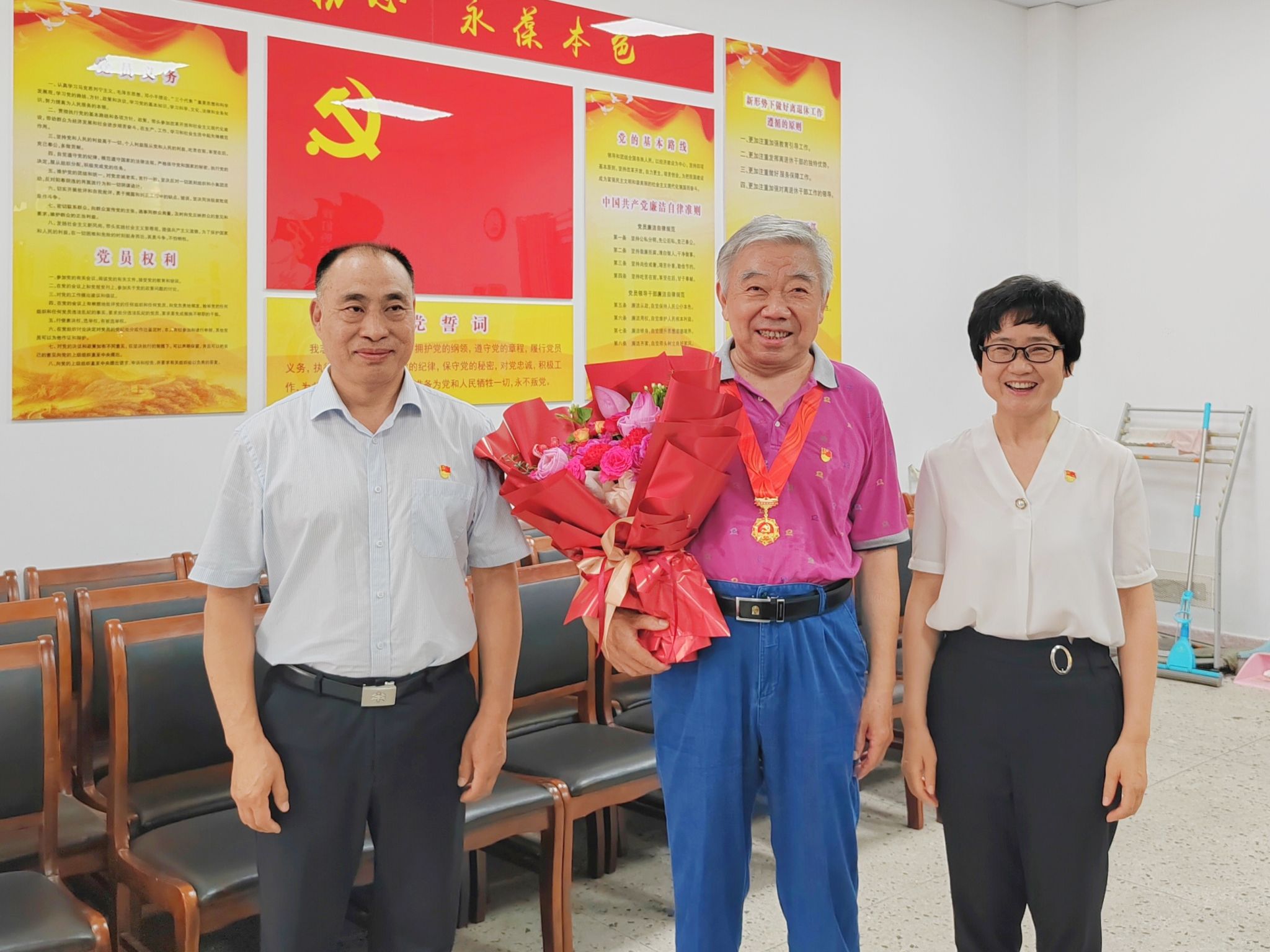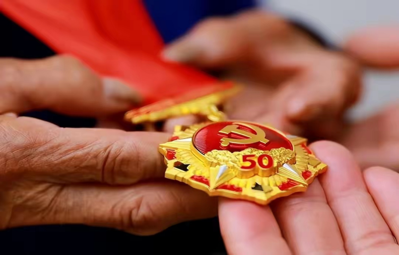 “光荣在党50年”这枚闪耀光辉的纪念章,是一份沉甸甸的政治荣誉,不仅是对老党员们50年来不忘初心、坚守信念的最高礼赞,更是传承接力、奋斗新时代的强大感召。今年,我校刘健、卢同权、陆家明、毕春俊、葛成祥、时名伦、付怀标、朱庆开、洪珍珠等9名退休老党员获得“光荣在党50年”纪念章。