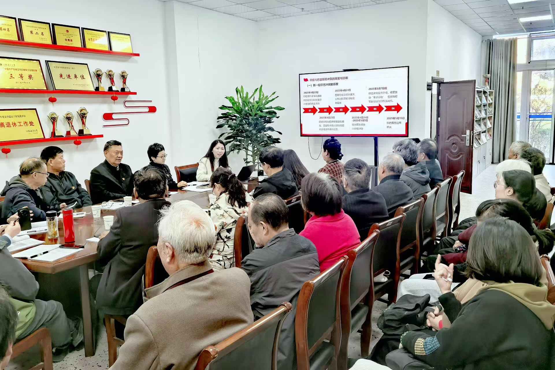 为深入学习贯彻新时代党的创新理论,提升支部委员政治素养与履职能力,2025年11月5日至6日,离退休党委组织支部委员开展专题培训,所属12个离退休支部的委员及全体在职人员参加了培训。培训聚焦国际形势教育与红色精神传承,通过专题讲座与实地研学相结合,为参训学员注入思想动能与实践智慧。