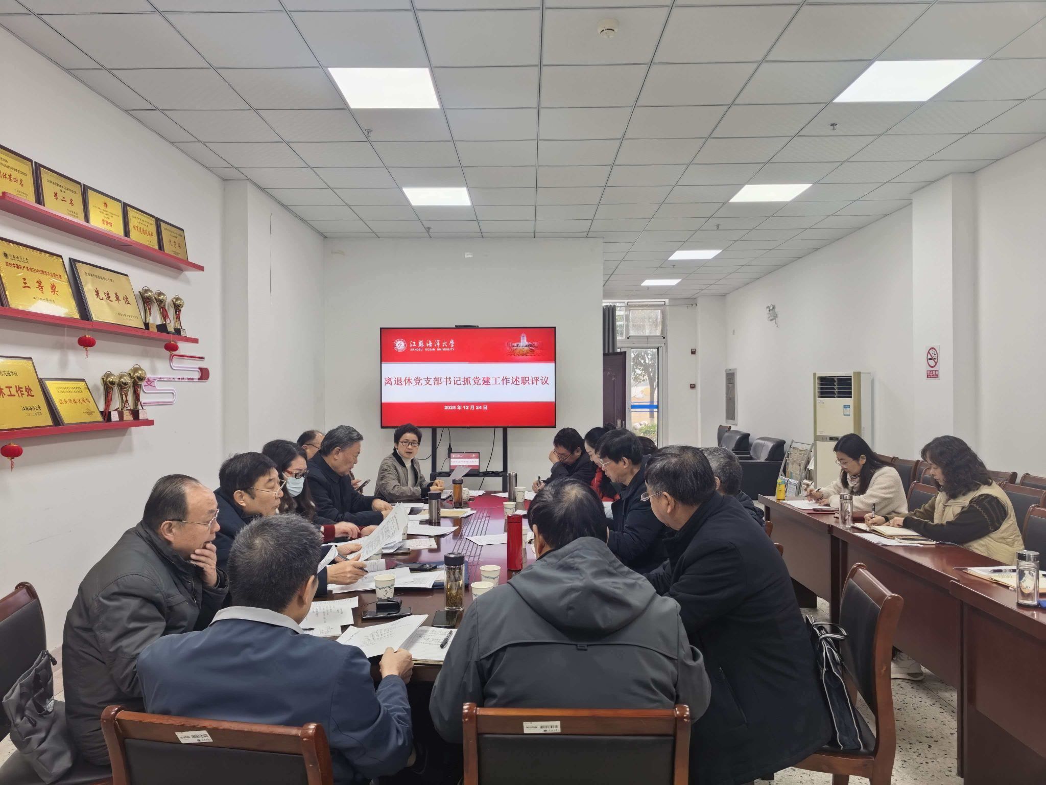12月24日离退休党委召开党支部书记抓党建工作述职评议会议,会议由党委书记钱汉珍主持,党委所属13个党支部的书记们参加会议并进行述职。