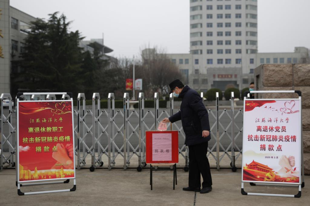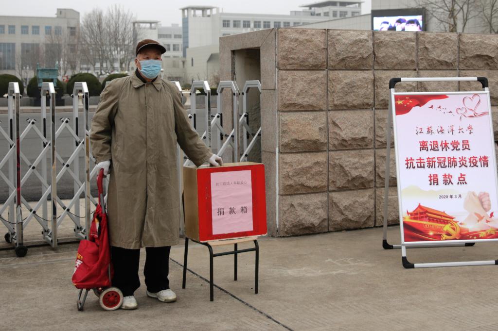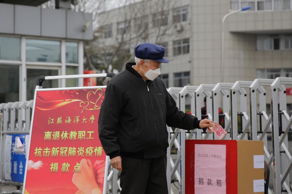 3月1日上午,考虑到老同志的特殊情况,经学校批准,离退休党工委在苍梧校区1号门门口设立江苏海洋大学离退休人员抗击新冠肺炎疫情捐款点,提前通知老同志们戴好口罩、保持适当距离,依次到捐款点捐款。捐款现场中,有多位离休干部、退休党员分别捐款5000元,有的退休老教授身体不好依然到现场捐款;有的老同志克服家中负担重的困难积极捐款,有的老同志将家中全部现金拿出来捐……老同志们纷纷表示“国家有危难,我们不能在一线像医务人员一样奋战,在后方为疫情防控尽微薄之力,是我们义不容辞的责任”“非常时期,我想为大家做点事”等等,质朴的语言体现着我们海洋大学离退休教职工的大爱与担当。