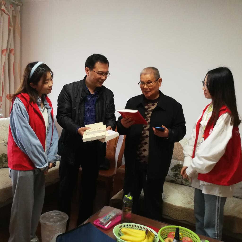 为进一步推动党史学习教育向深度和广度延伸,5月12日下午,离退休党工委书记黄金虎带领在职党支部人员与文法学院“桃李欣欣,不忘师恩”敬老服务志愿者分别前往退休老党员教师家开展“送书上门,聆听党史”活动。