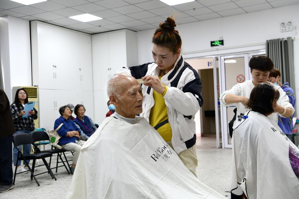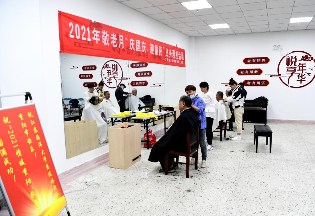 为弘扬中华民族尊老敬老的传统美德,让我校广大离退休老同志度过一个温馨愉快的节日,离退休工作处结合党史学习教育,积极开展“我为师生办实事”实践活动——重阳节义务理发。