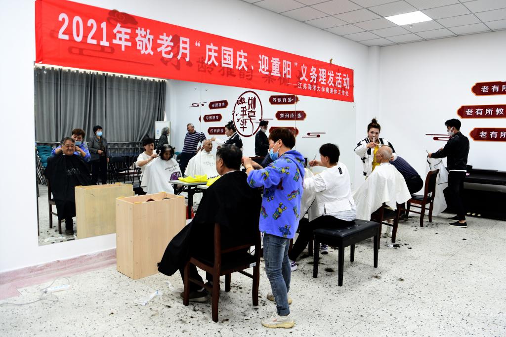 10月11日,作为“2021情暖重阳”敬老月系列活动之一的“庆国庆、迎重阳”义务理发活动,经过精心组织在离退休处108活动室如期举行。近30位离退休老同志满怀愉悦地参加了义务理发活动,沭艺造型的理发师们以精湛的技艺为老同志奉献爱心。在温馨祥和的氛围下,一个上午的活动圆满完成,老同志们的脸上漾出了幸福的微笑。本次活动赢得了广大离退休教职工由衷的赞扬。