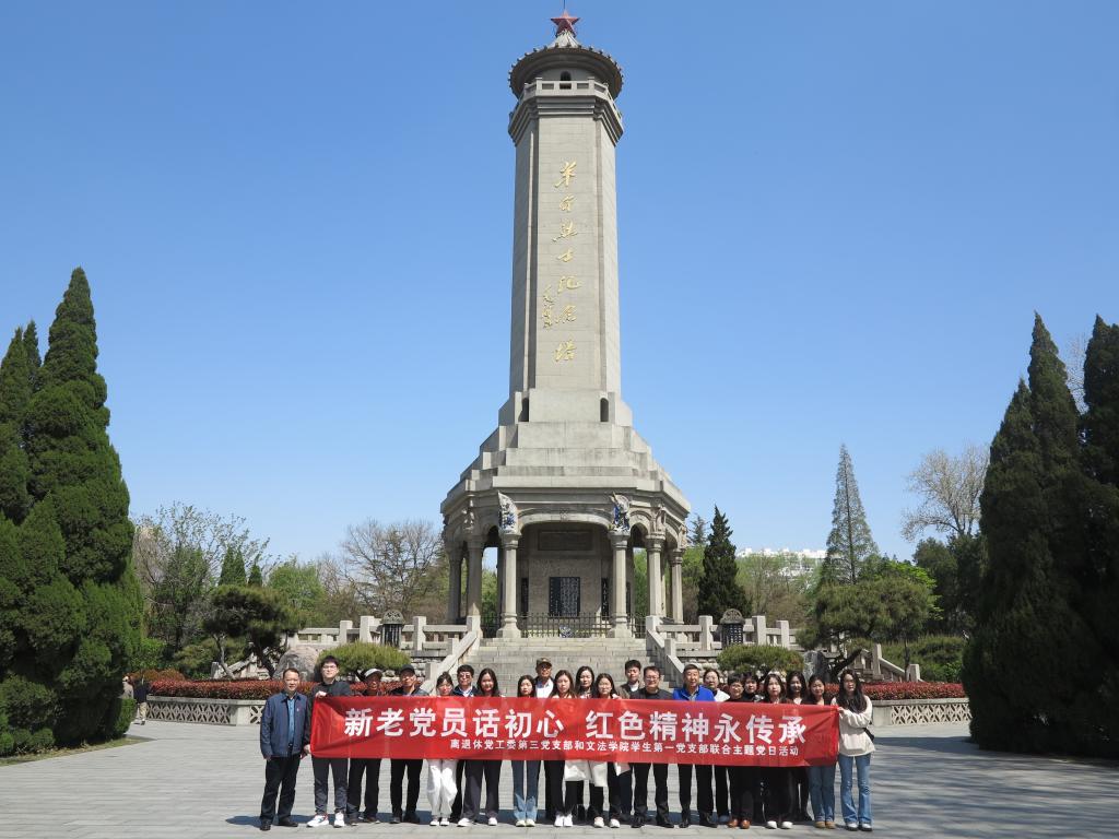 上午10时许,党员同志们来到华东革命烈士陵园。革命烈士纪念堂墙壁上刻着密密麻麻的名字,这是从大革命时期到解放战争时期的25年间,在沂蒙山区境内战斗、工作牺牲及沂蒙山区在外地牺牲的62576位烈士的英名。学生党员在离退处坦克兵老党员卢同权的讲解下,了解抗日战争时期山东革命根据地军民英勇抗击日寇的英雄事迹,深切感受革命先辈们为党和人民的事业英勇拼搏、浴血奋战的革命精神。