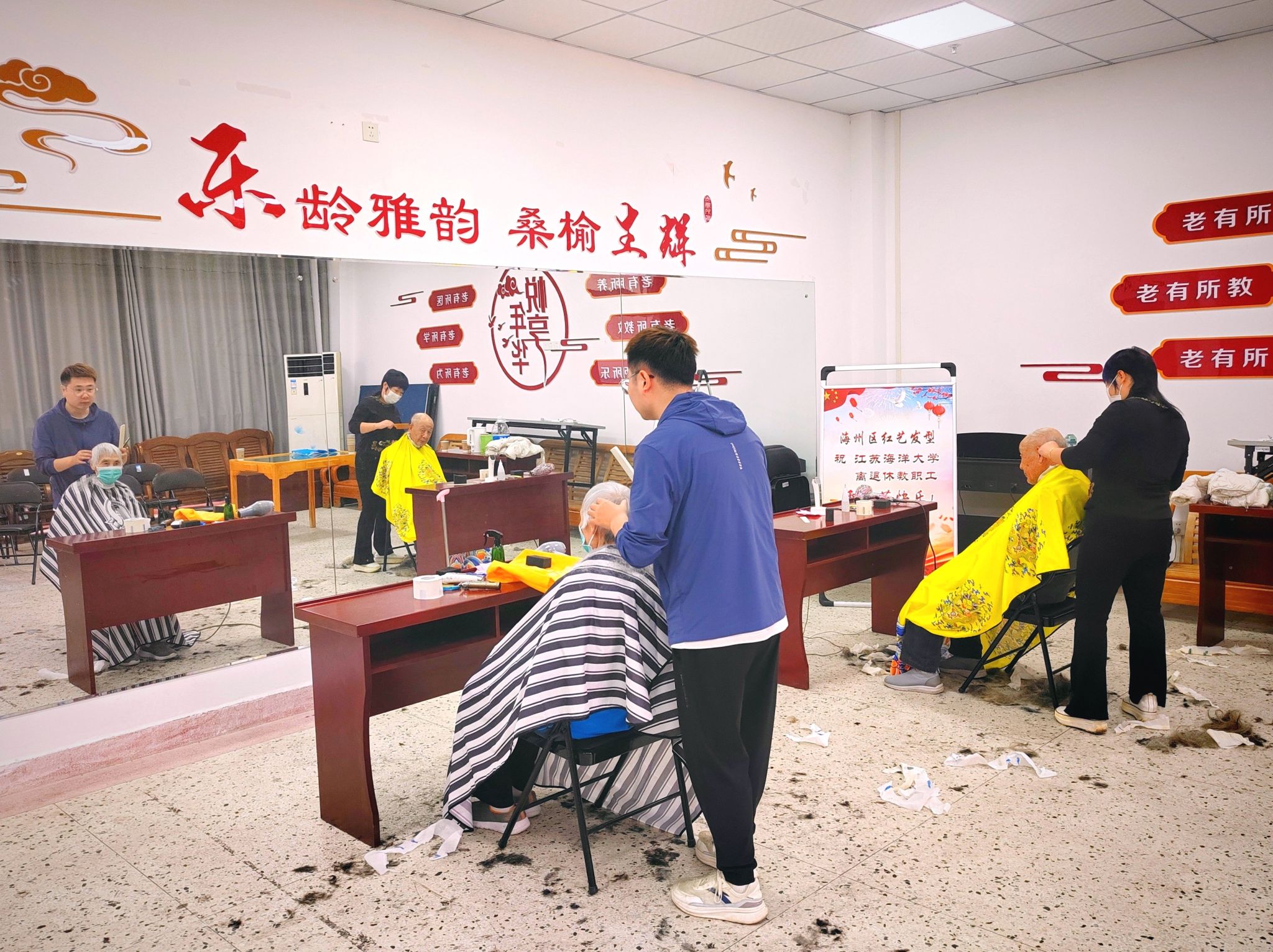 为进一步弘扬中华民族“尊老、敬老、爱老、助老”的传统美德,10月10日上午,校离退休工作处组织开展“关爱长者、喜迎重阳”义务理发活动。文法学院选派了数名学生志愿者,为老同志们提供了周到细致的服务。
