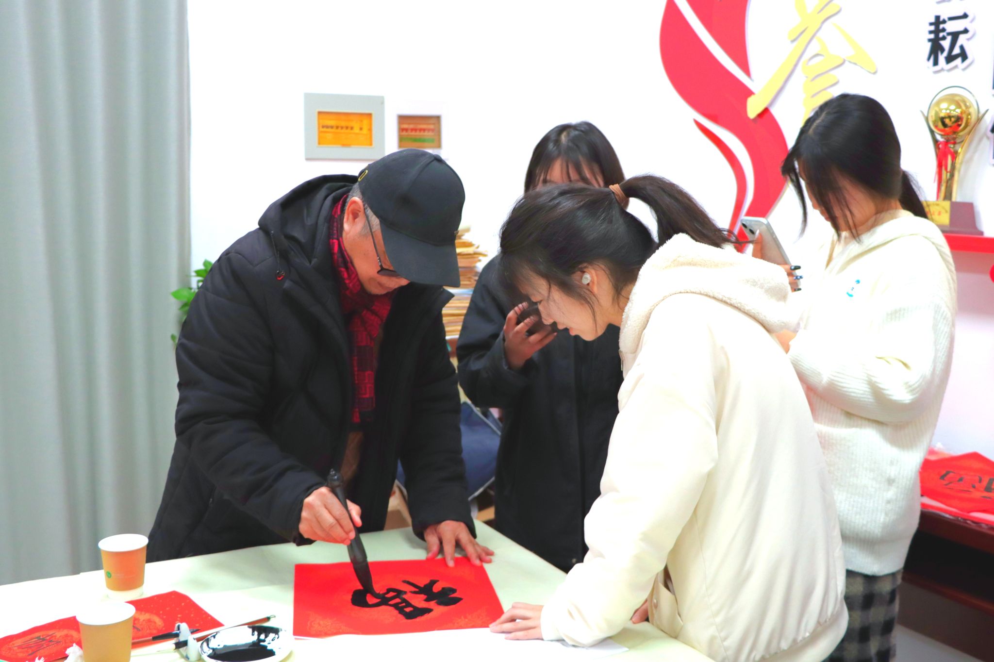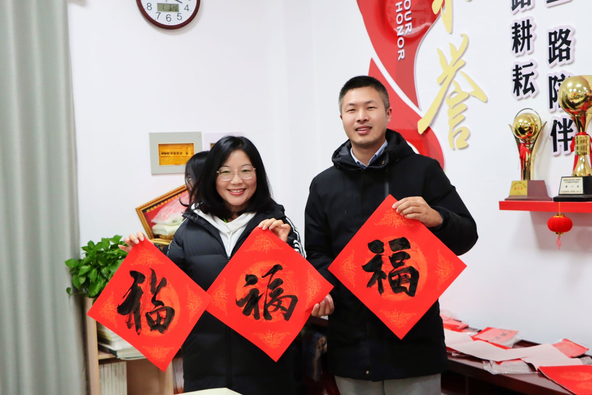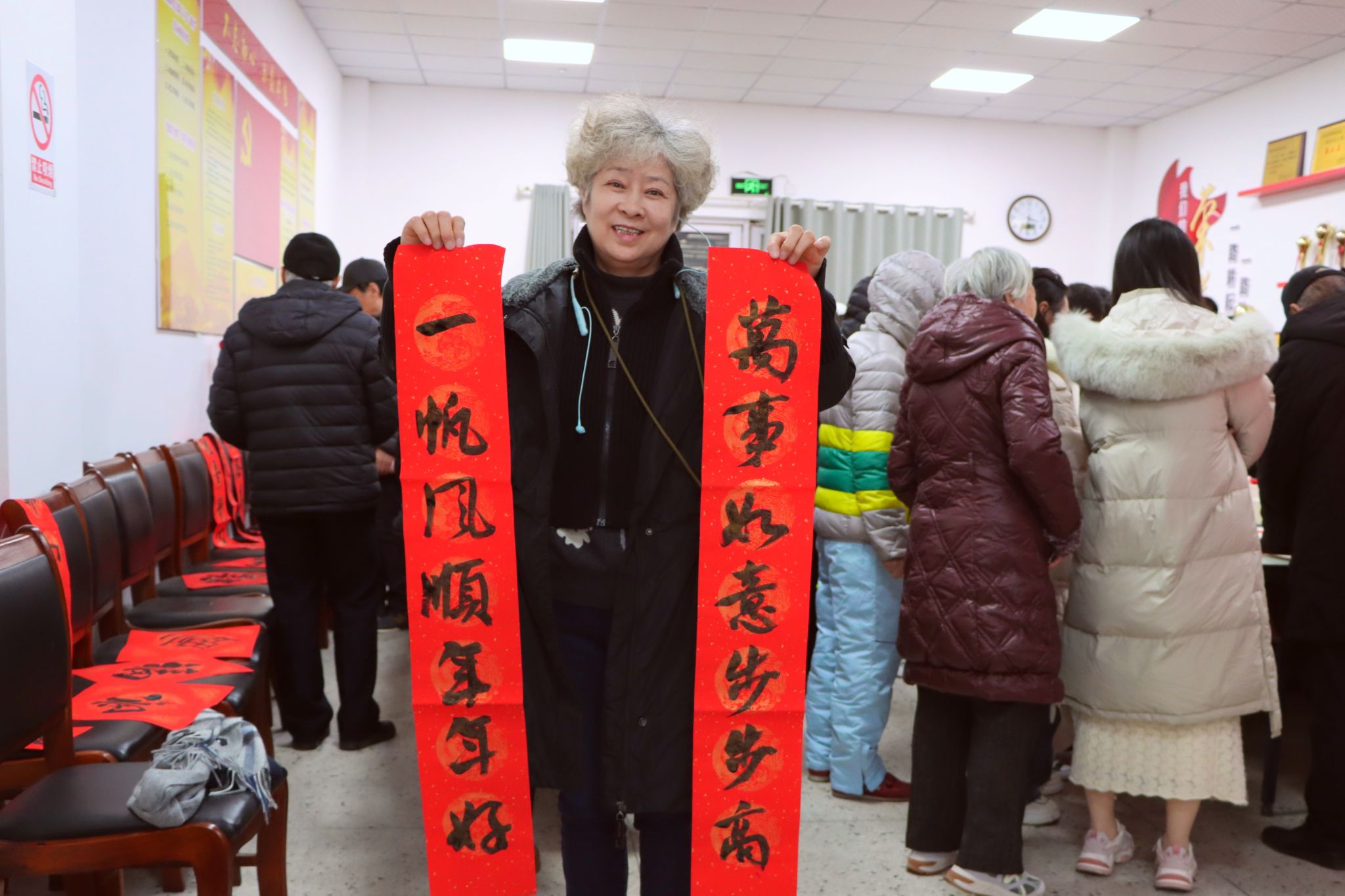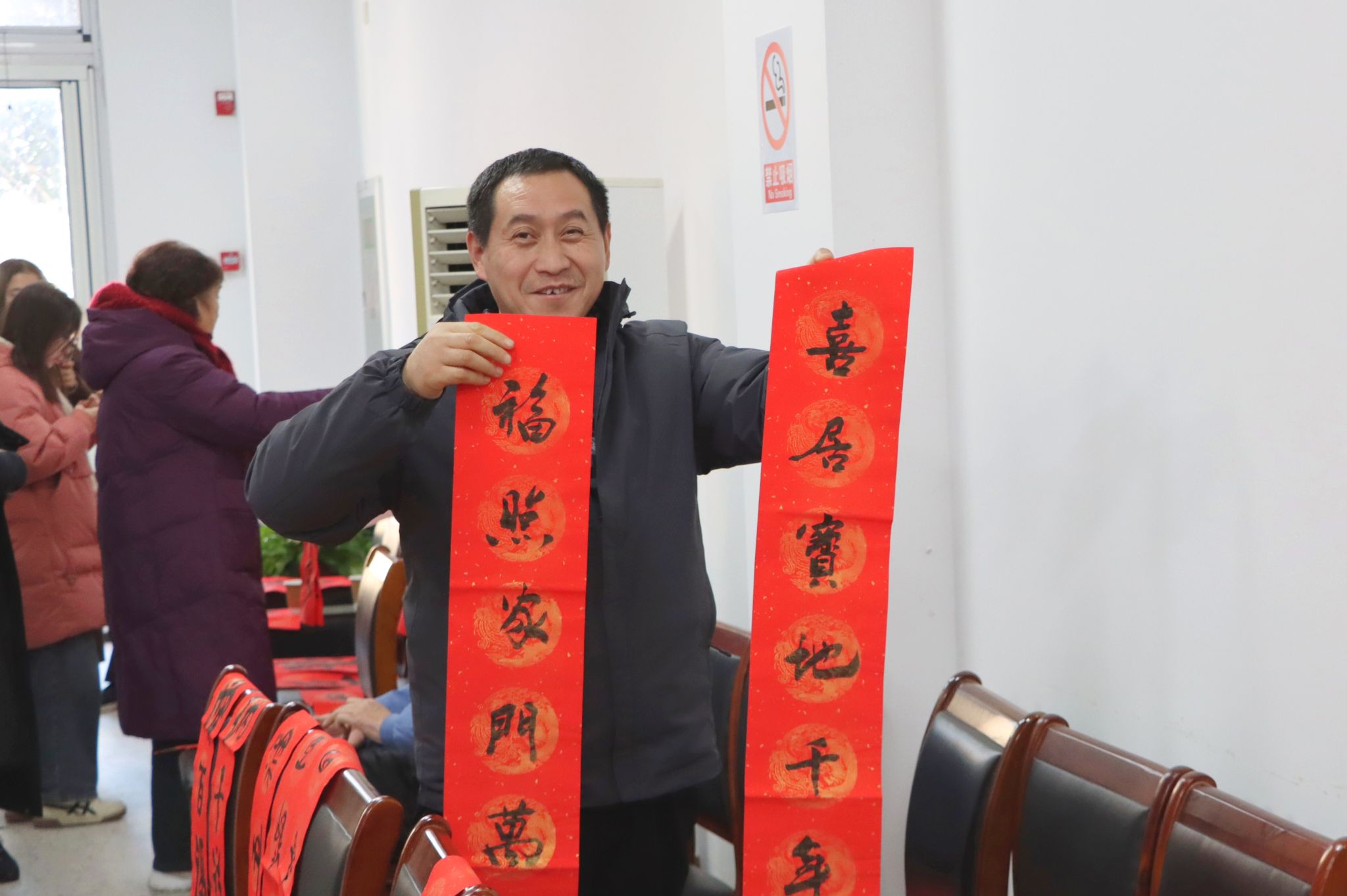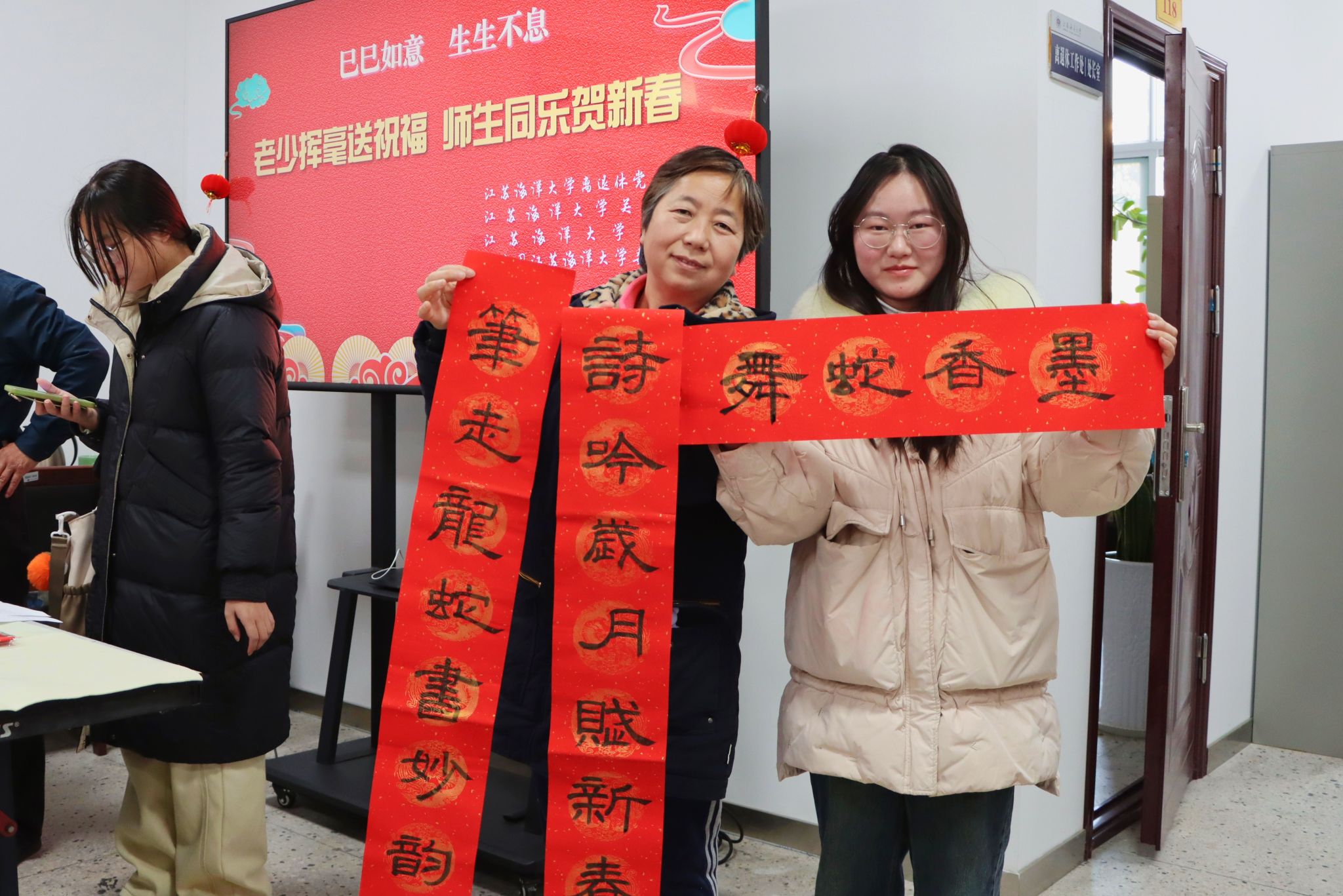 整场活动持续了近3小时,志愿者们把200多副春联和200个“福”字送到参与活动的师生手中。“海纳百川呈瑞彩 天开万里醉春风”“龙腾大地春阳丽 蛇舞神州世纪新”……一幅幅对仗工整、寓意美好春联,饱含着对全校师生的新春祝福和对新一年的美好期盼。大家手持春联和“福”字纷纷拍照留念,脸上洋溢着幸福的笑容。