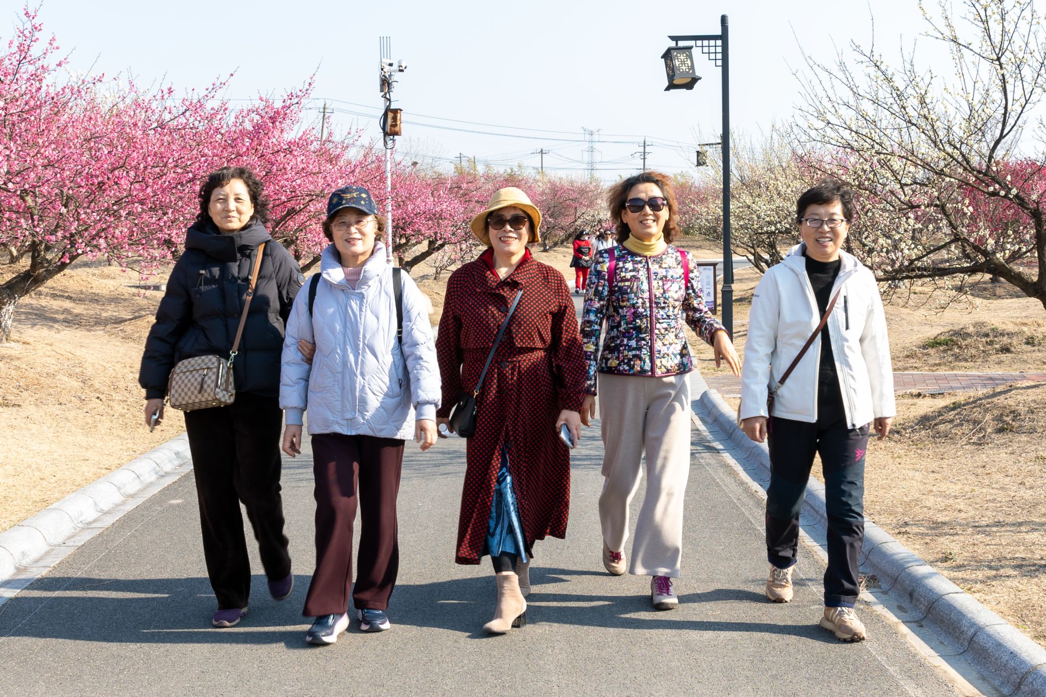 春日暖阳下,2万多株梅花竞相绽放,千亩梅园繁花似锦。阵阵微风拂过,花瓣轻舞,暗香扑鼻,沁人心脾,老同志们沿着梅林步道健步前行。徜徉于花海之间,或驻足观赏,或拍照留念,用镜头定格下这春日的美景,脸上洋溢着幸福的笑容。