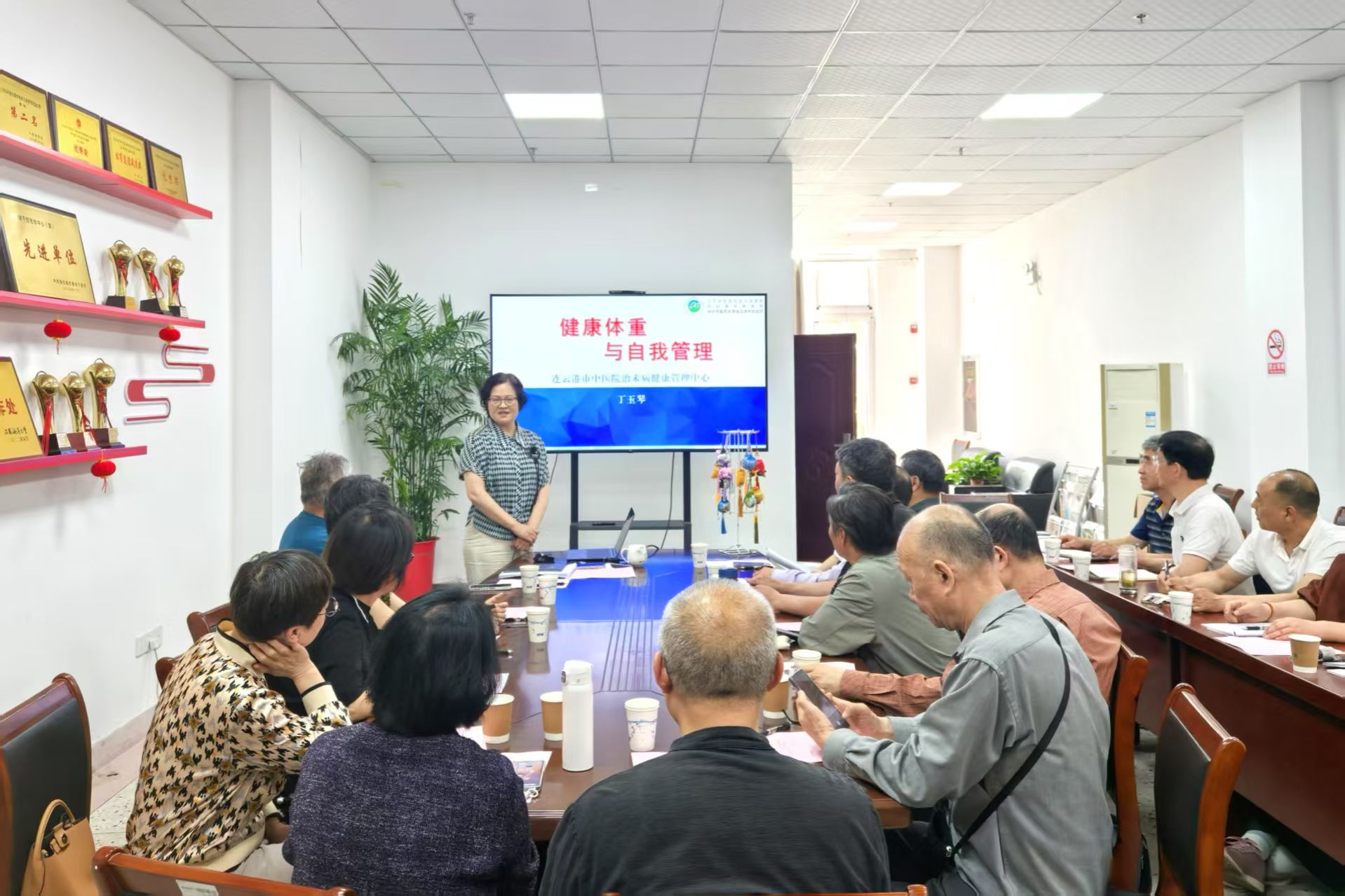 活动邀请连云港市中医院治未病健康管理中心专职体重管理师、主任护师丁玉琴做“健康体重与自我管理”讲座,向老年朋友们传授慢性病调理、肥胖管理、健康饮食、合理运动、疾病预防等方面的知识,并耐心解答了大家的问题,给予科学的指导。她强调,体重控制和健康的生活方式对于老年人来说至关重要,可以有效延缓衰老过程、预防多种慢性疾病的发生。