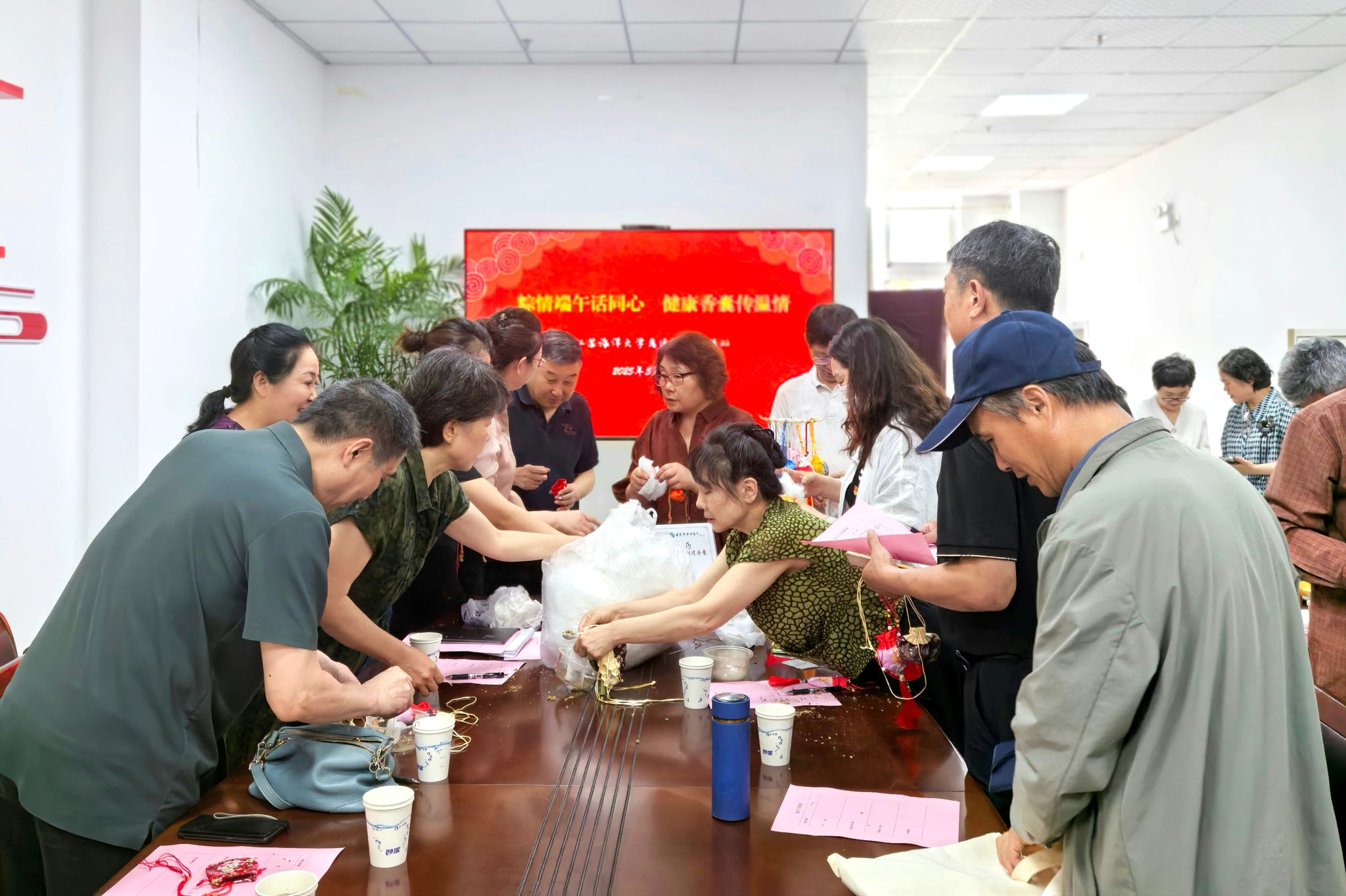 5月30日上午,离退休党工委在筑海楼104室开展“粽情端午话同心 健康香囊传温情”主题活动。退休的民主党派代表和离退休党支部书记及支部联络员30余人欢聚一堂,围绕“倾听银龄心声、乐享安康生活”交流互动。离退休党工委书记钱汉珍参加并主持。