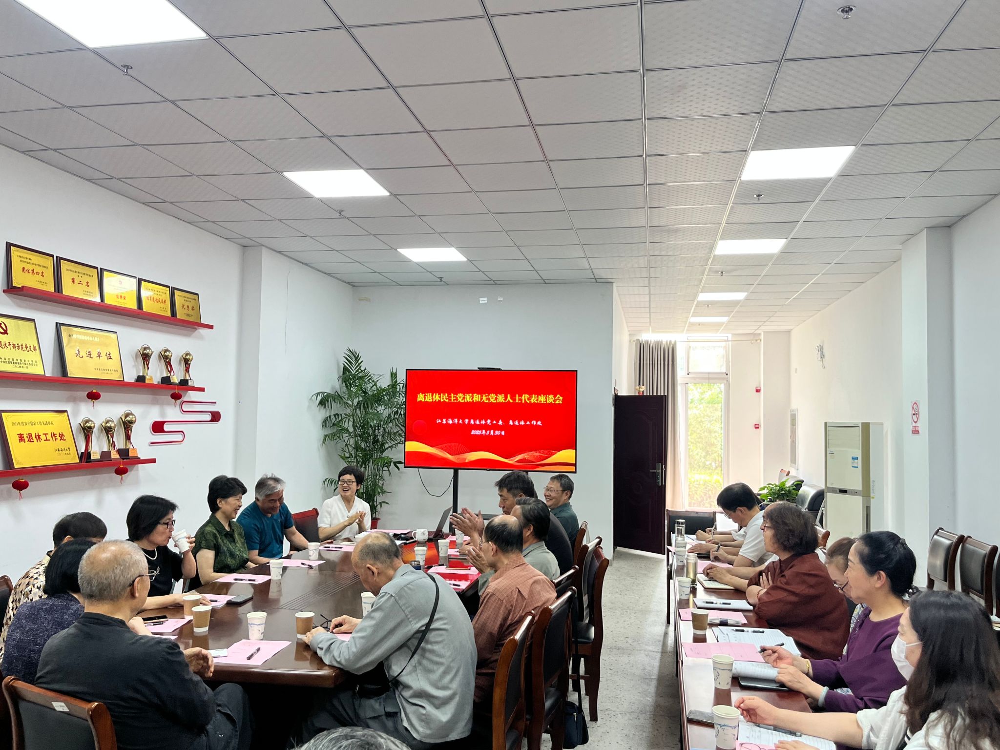 钱汉珍首先简要通报了近期离退休工作情况,听取了与会离退休老同志的意见和建议。与会人员踊跃发言,就进一步做好离退休管理服务工作深入交流。钱汉珍对民主党派和无党派退休老同志的工作支持表示感谢,希望大家能够继续发挥建言献策的作用,始终保持同心、同向、同行,为学校事业高质量发展凝心聚力。